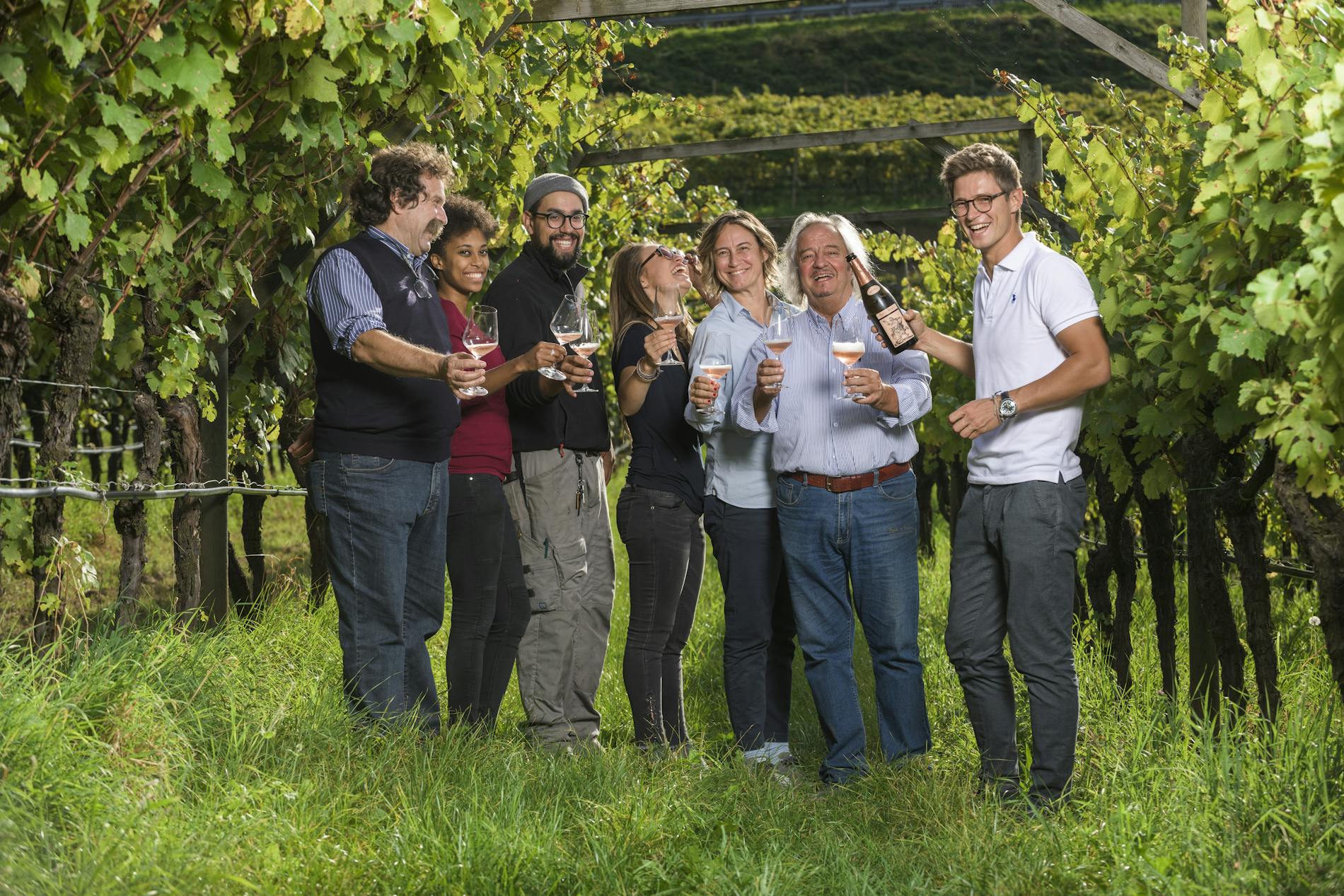 Between the rows, herbicides or desiccants are never used, much less anti-trite chemical treatments, so the plants of müller thurgau, chardonnay, nosiola, aromatic traminer, sauvignon and pinot noir produce pure, precious and natural grapes. Bunches that are processed in the cellar using the most advanced enological technologies, always used in the deepest respect of the ancient territorial traditions.
